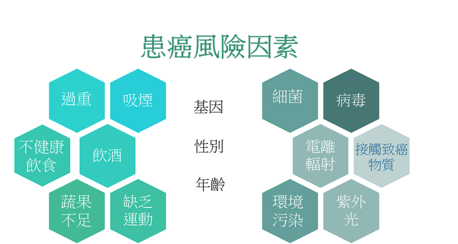 本文集中討論可以控制的癌症風險因素,至於先天的因素可參考「基因與癌症」章節。